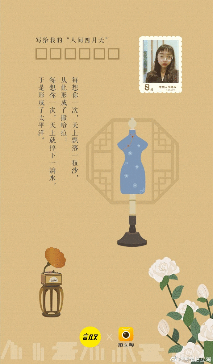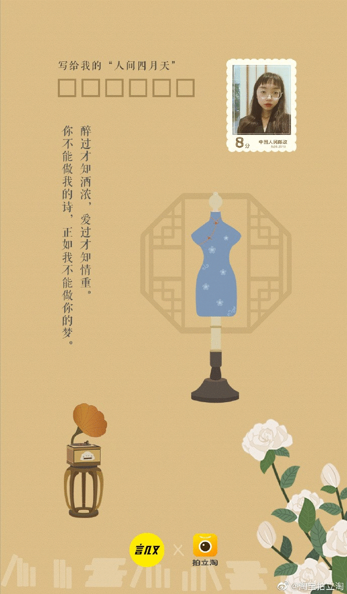 6、淘宝拍立淘 x 言几又:《别样情书》写给“你的人间四月天”。