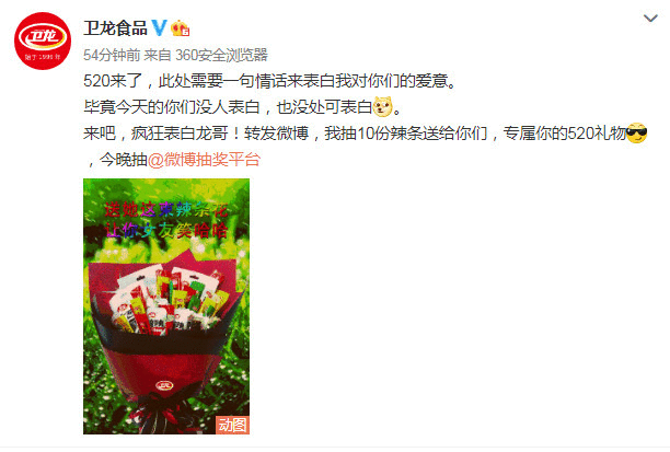 3、卫龙:表面怼粉、实际上还是很宠粉的辣条巨头,毕竟精心准备了别具匠心的“辣条花束”,今天你辣条自由了吗?