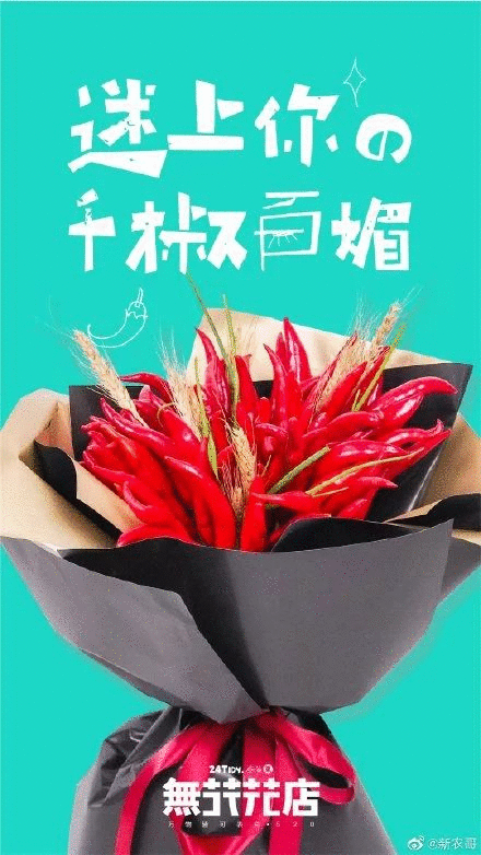 520这天,上海一家鲜花服务平台开了家“无花花店”,万物皆可表白。你可以用任何你想到的东西做成花束,拳套、钢丝球、蛋糕、面包、辣椒都可以做成花束用来表白,比如辣椒花束,这样的“千椒百媚”你承受得住吗?