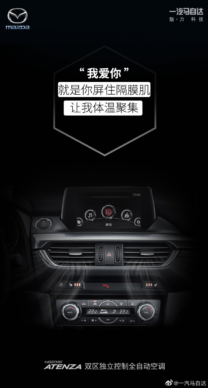 5、一汽马自达:520宜表白,忌闷骚,看一汽马自达花样解读“我爱你”。