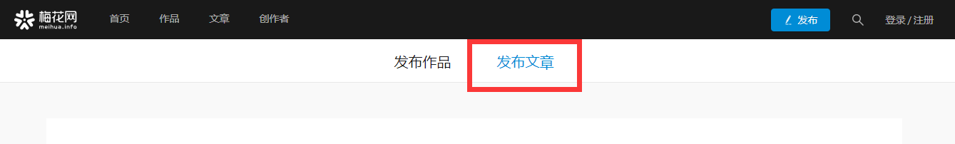 第三步:梅花网投稿后台分为【作品】和【文章】两部分,发布文章请点击右侧的【发布文章】按钮。