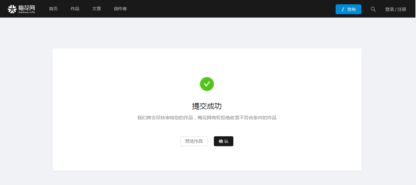 b、【发布】:点击【发布】后文章将提交至梅花网编辑后台。