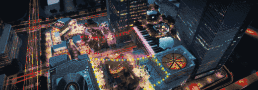 这支宣传片抓住了年轻人“爱看”和“爱玩”的特点。将插画元素融入实景视频,开头以第一人称视角串联从机场到商场的线路,打造游戏交互般的带入感。