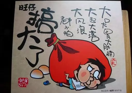 说起旺旺的走红之路还要追溯到2017年年底。2017年双11期间,旺旺推出一个名为「搞大了」的礼盒,礼盒内旺仔小馒头、旺旺雪饼、旺旺仙贝等纷纷摇身一变成了加大版,那个陪伴大家童年的"旺旺"感觉也跟着一起"长大"了。
