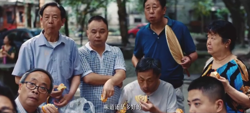 为体现原生的川味,短片又有很多细节之处的用心。拿着摇着蒲扇的区民,骑着三轮车的刘姐……都有带着浓浓的本地特色。