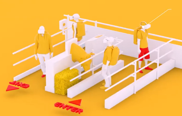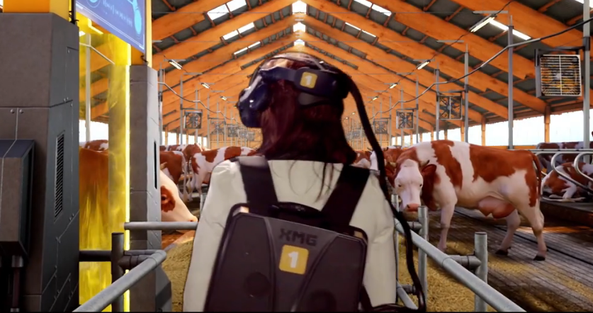 在宣传片中,可以看到几个人在参观养牛场,不过,头上好像还戴了什么设备。