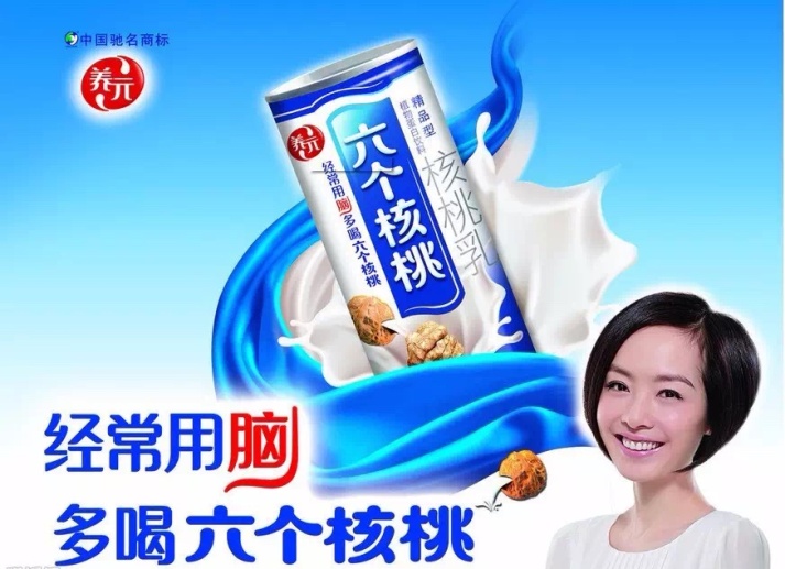 在传统观念中,讲究以形补形,核桃和大脑相似的形态,就会给人核桃很补脑的感觉。因此六个核桃的文案,“经常用脑,多喝六个核桃”,也自然更有说服力。