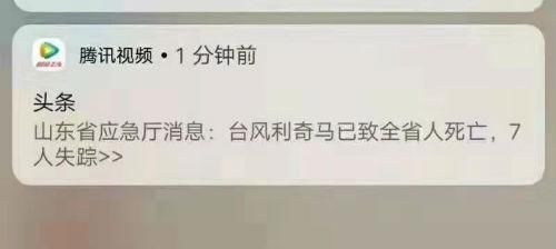 8月12日中午,腾讯视频发送了一则推送,称“山东省应急厅消息:台风利奇马已致全省人死亡,7人失踪”的推送,网友纷纷表示,这是被“团灭”了,希望腾讯视频能给出解释。