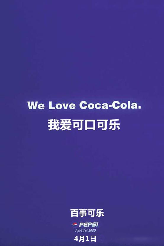愚人节,百事可乐的这则借势海报,就很有意思啦,自古红蓝出CP哈哈哈……