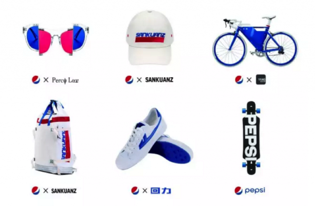 而时下最热门的跨界营销,百事可乐也很会玩。早在2017年,百事可乐就联合很多潮牌,在很多时尚单品中,融入了百事可乐的元素。