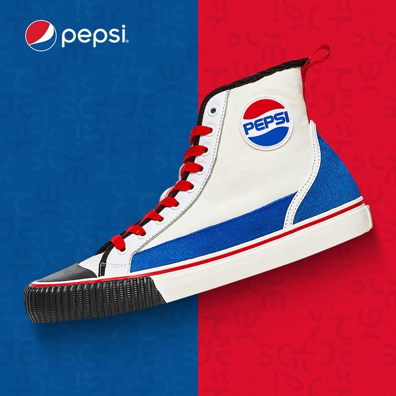 前不久,百事可乐也推出了几款跨界鞋子,别的不说,蓝白红的配色,其实真的还蛮好看的。