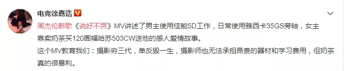 《说好不哭》新歌也是典型的周杰伦味道,讲述了一个女孩子对摄影师男友无怨无悔的陪伴、支持、等待……正如网友说的那样,“这么多年了,周杰伦还是那个最懂青春的人”。