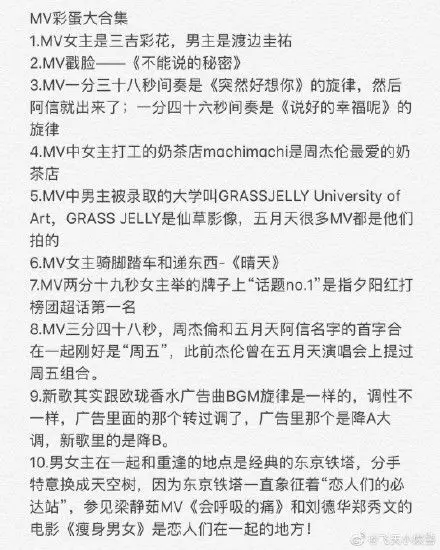 超会玩梗的周杰伦,在mv中埋了很多彩蛋。于是,昨天晚上,也变成了网友的大型找茬现场。