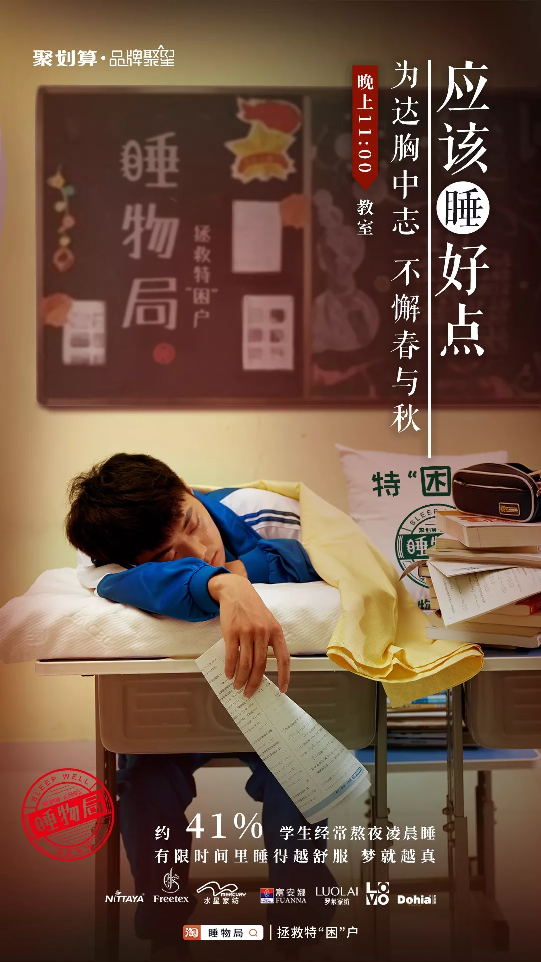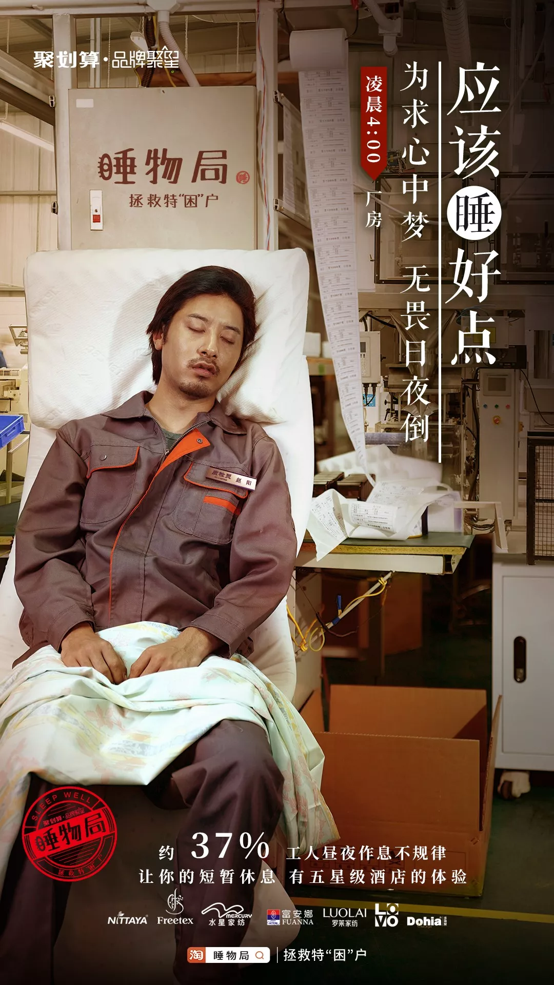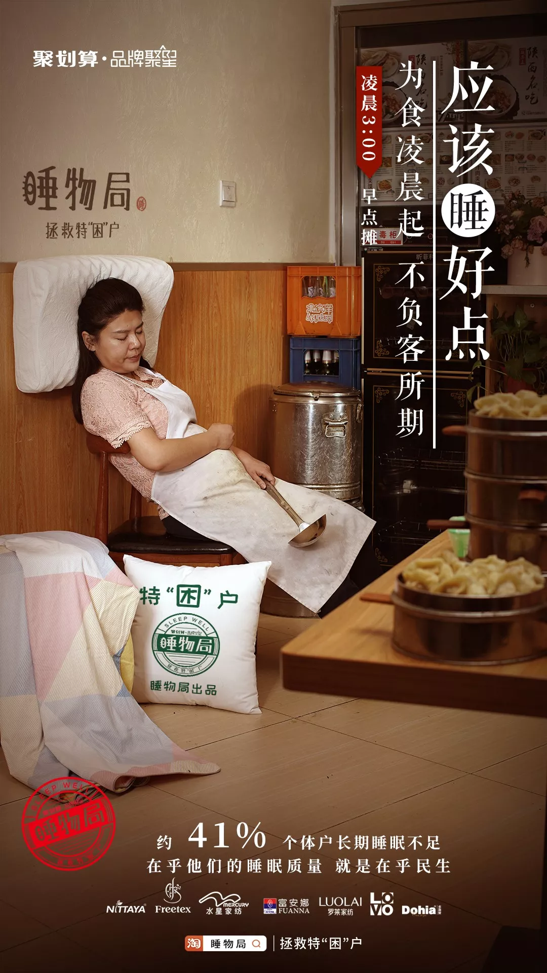 最近聚划算特别会搞事,这次聚划算联合了六大知名家纺品牌,共同发起「睡物局」拯救特"困"户行动,即使工作再累,也要睡好点。