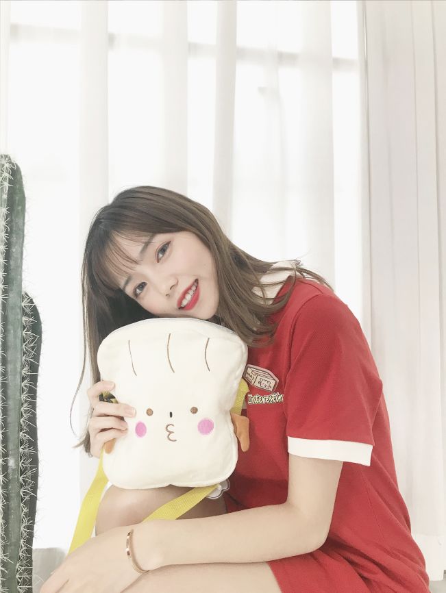 此次跨界营销,"买买能买"区别于其他的购物账号,尝试着将本身的IP物化,加深自己的品牌印象--一个扎着双马尾,脸上两朵粉色腮红的拟人烧麦形象。