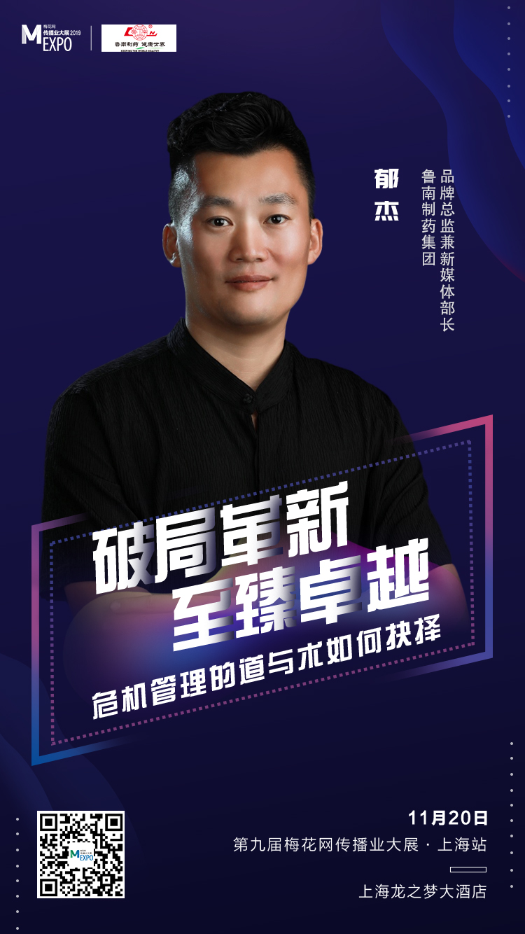 鲁南制药集团品牌总监兼新媒体部长郁杰确认出席第九届梅花网传播业大展-上海站,参加MEXPO2019上海站11月20日下午的“增长为王”活动单元,并带来精彩的圆桌分享“危机管理的道与术如何抉择”。