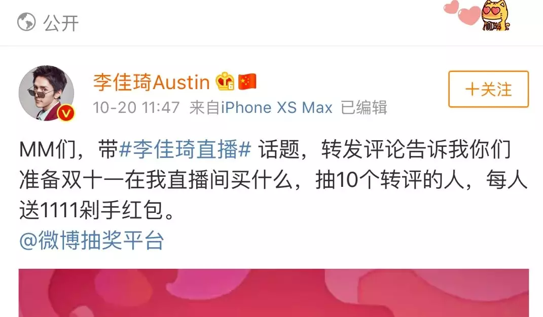 在直播前,他也会用关注+转发抽奖的方法,给粉丝发福利的同时,进一步增加自己在微博的曝光量。