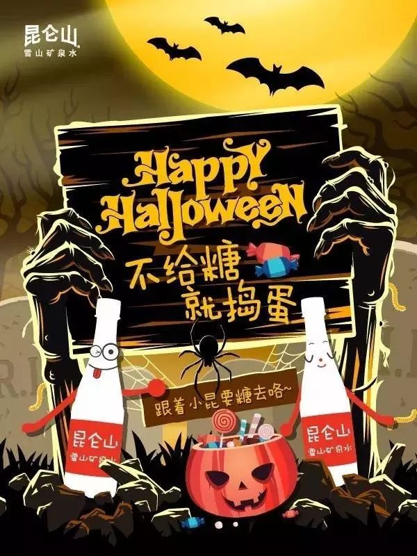1.大多数品牌都会海报借势,难出错又稳妥。海报的关键因素有糖果、狂欢、南瓜灯、美化妖魔等角度,不宜过于惊悚。