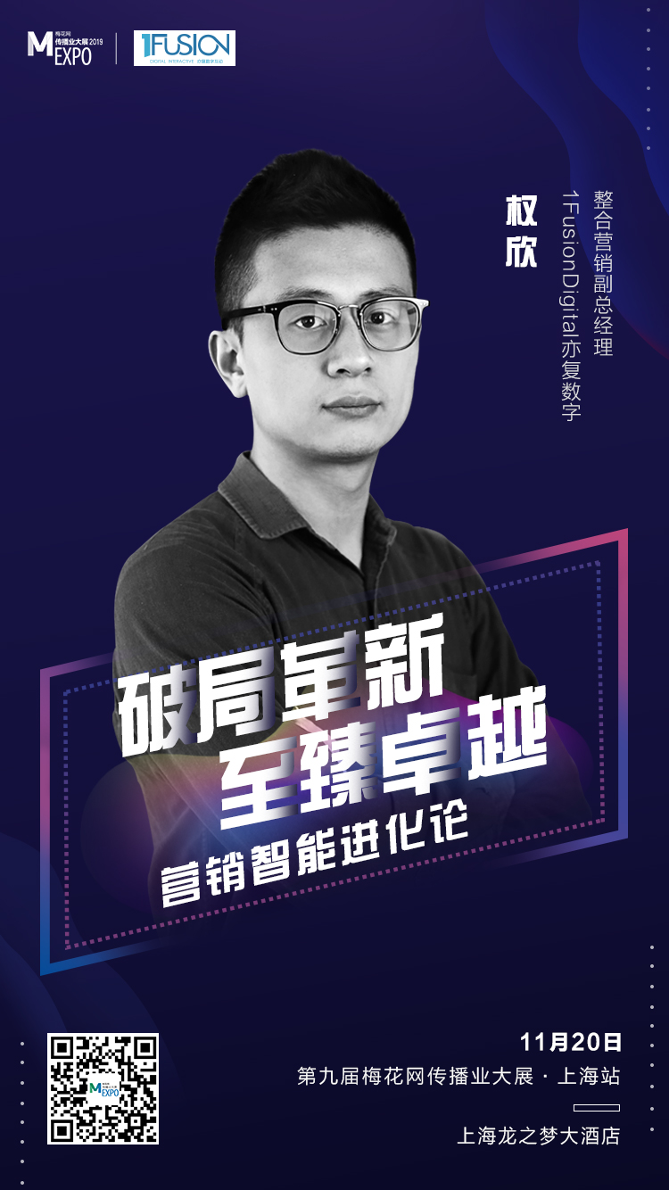 1FusionDigital亦复数字整合营销副总经理权欣确认出席2019梅花网传播业大展-上海站,并在MEXPO2019上海站11月20日上午的“营销智能进化论”活动单元带来主题演讲。
