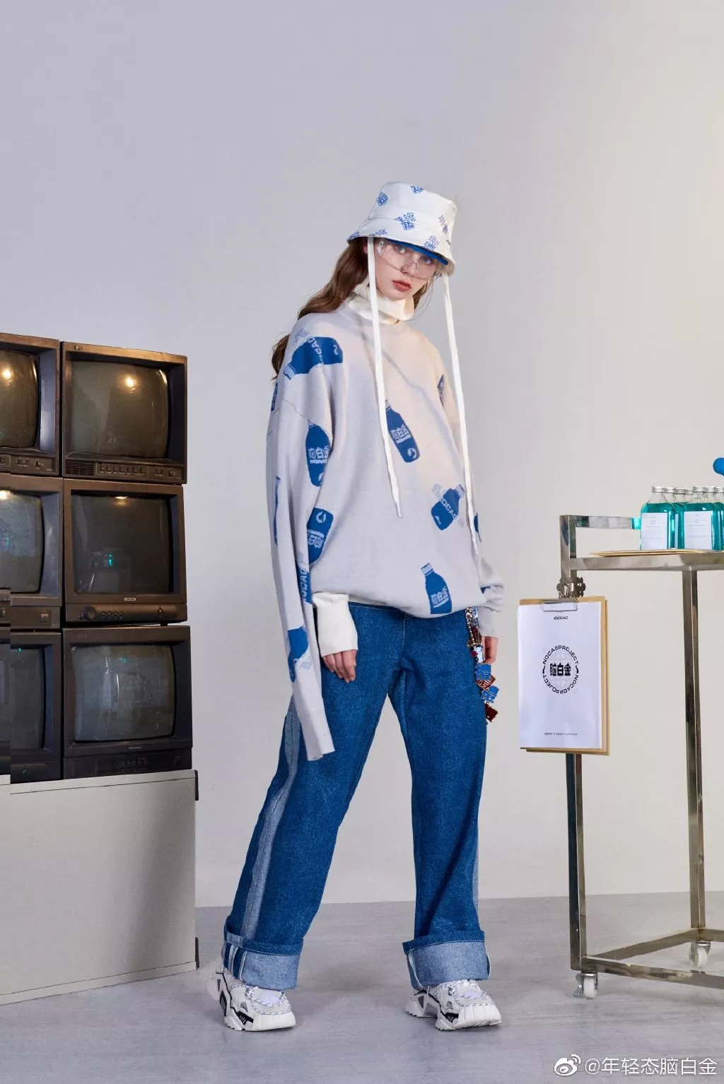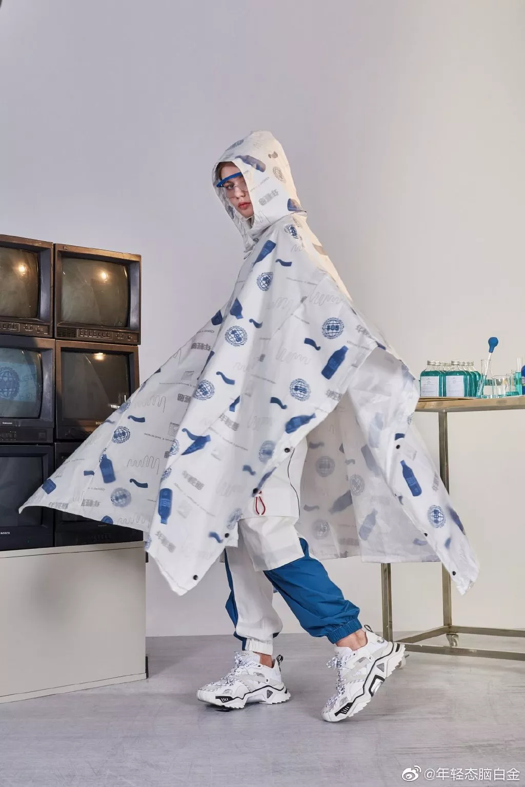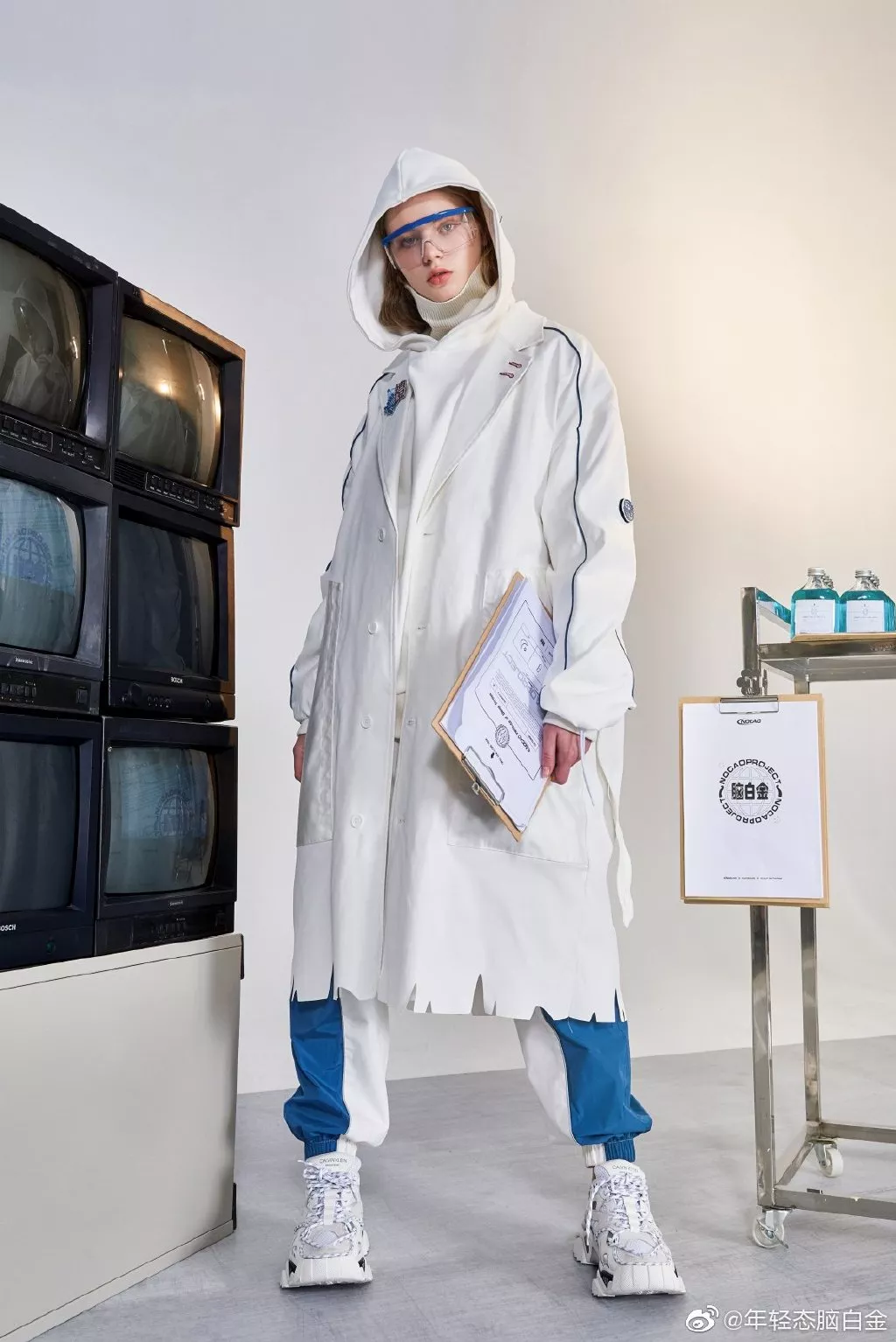 轻快的打击乐,高冷的眼神,街头感的服装版型,还有迷惑的摇晃实验室烧杯。 NOCAO的联名款感觉更加迎合了现代审美,而实验室的场景甚至还为其增添了一些未来元素。