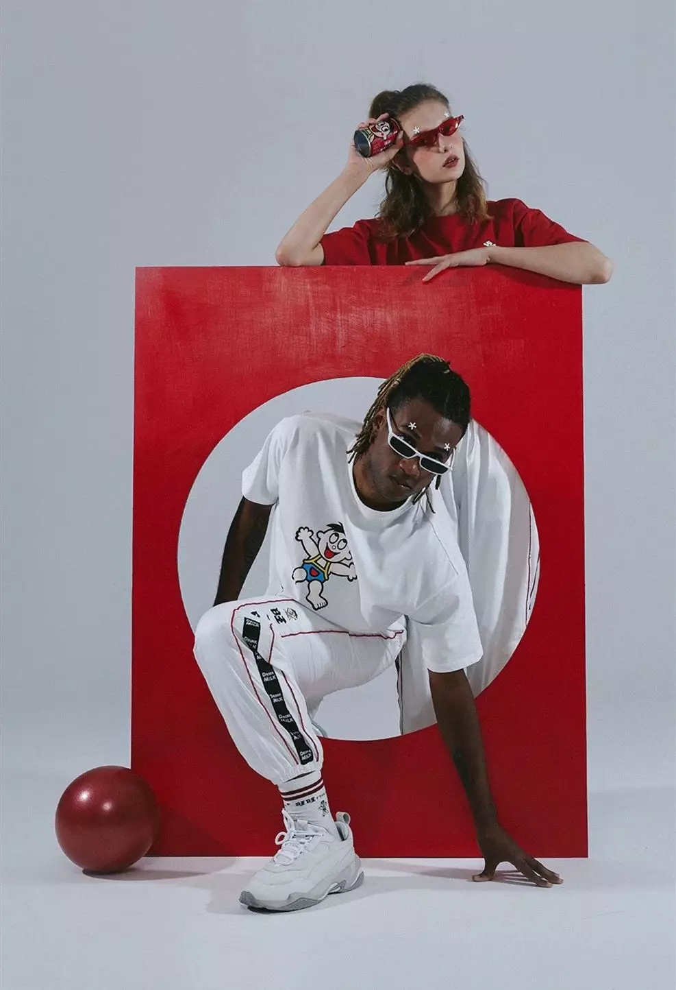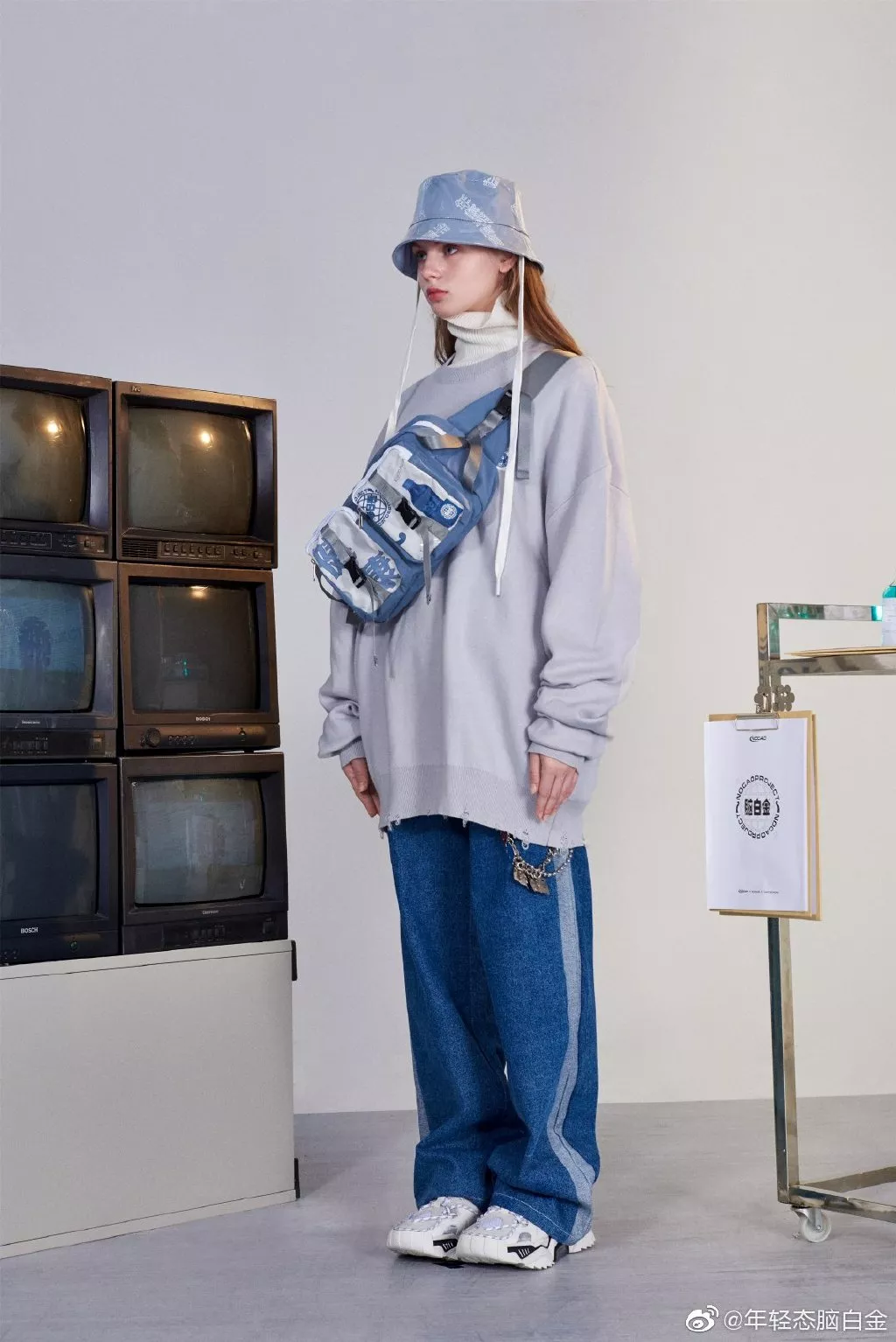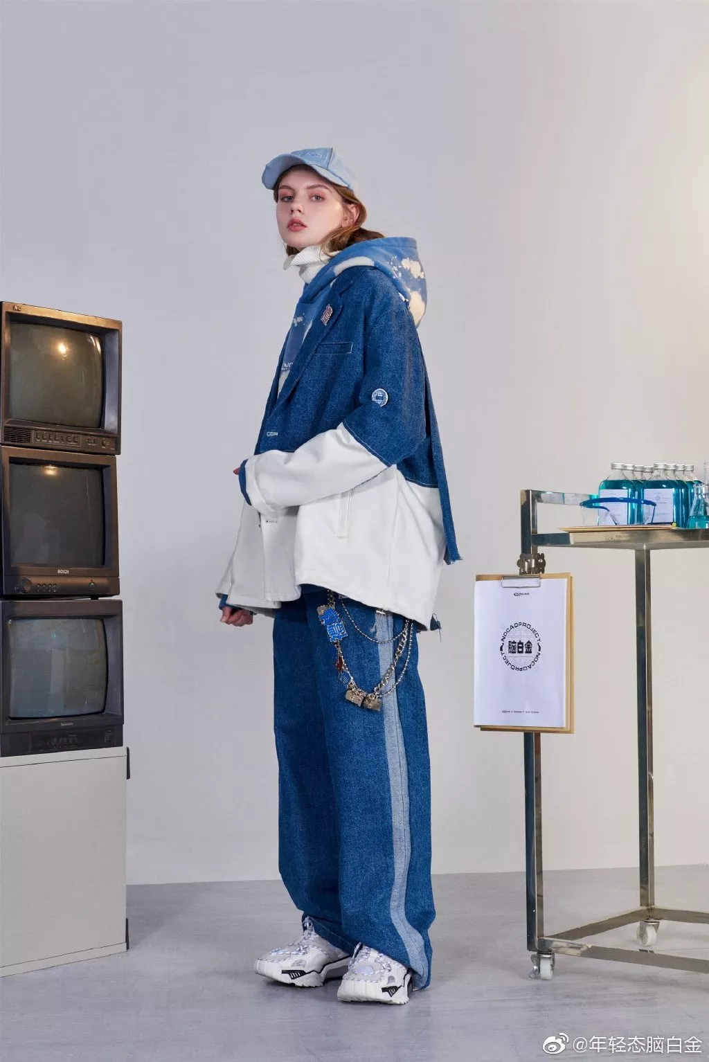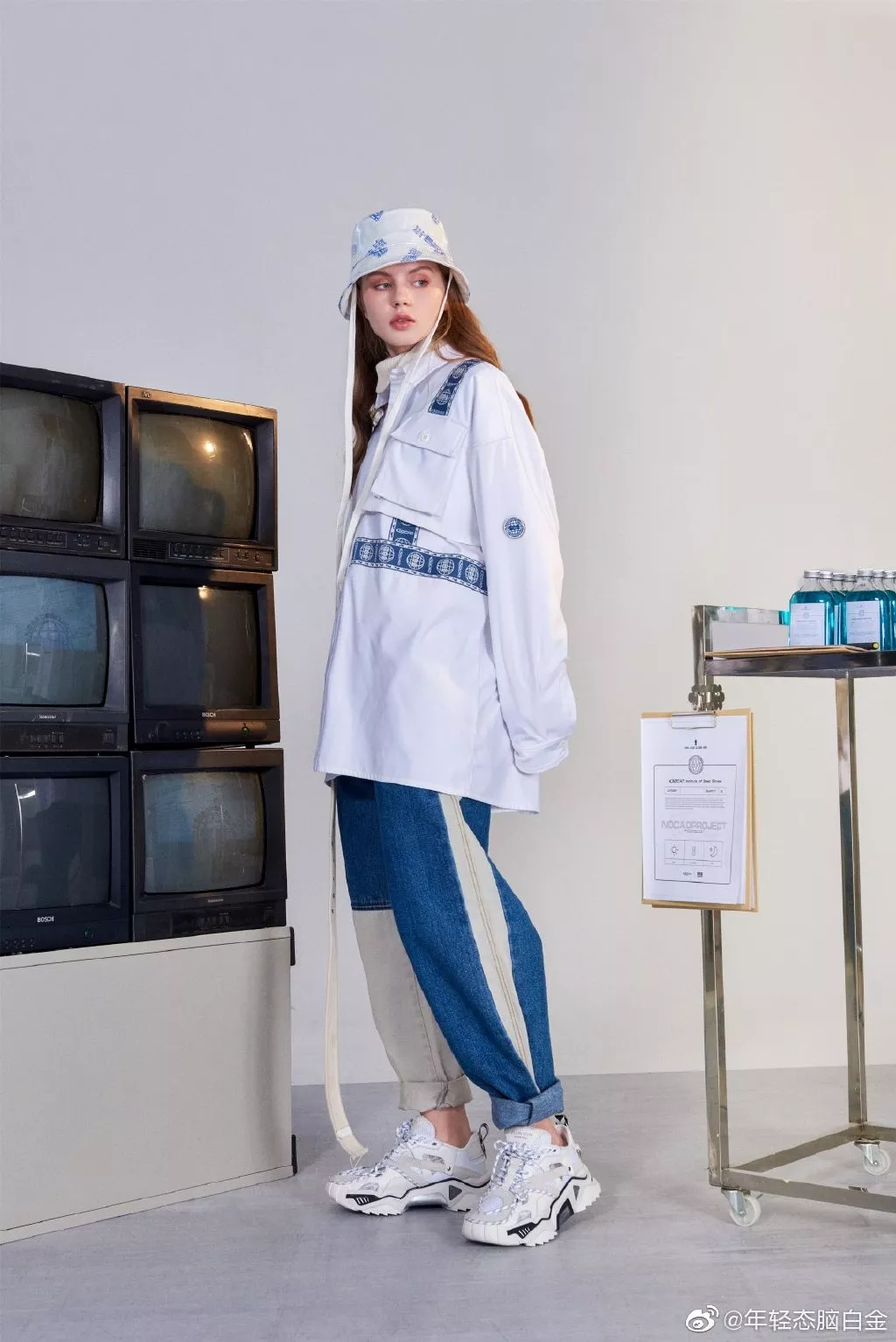 轻快的打击乐,高冷的眼神,街头感的服装版型,还有迷惑的摇晃实验室烧杯。 NOCAO的联名款感觉更加迎合了现代审美,而实验室的场景甚至还为其增添了一些未来元素。