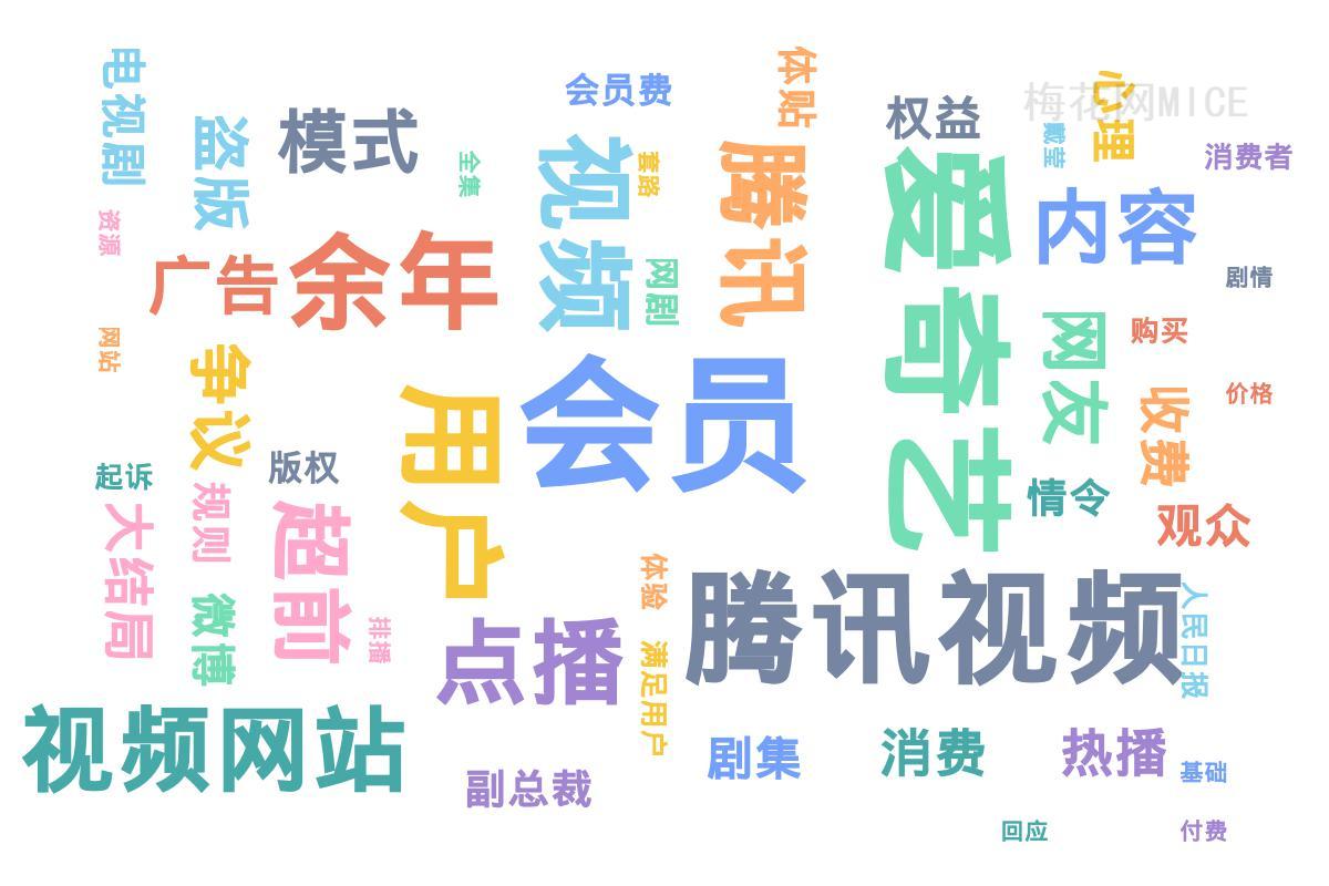 “超前点播”事件事件词云图,数据来源:梅花网MICE舆情监测系统