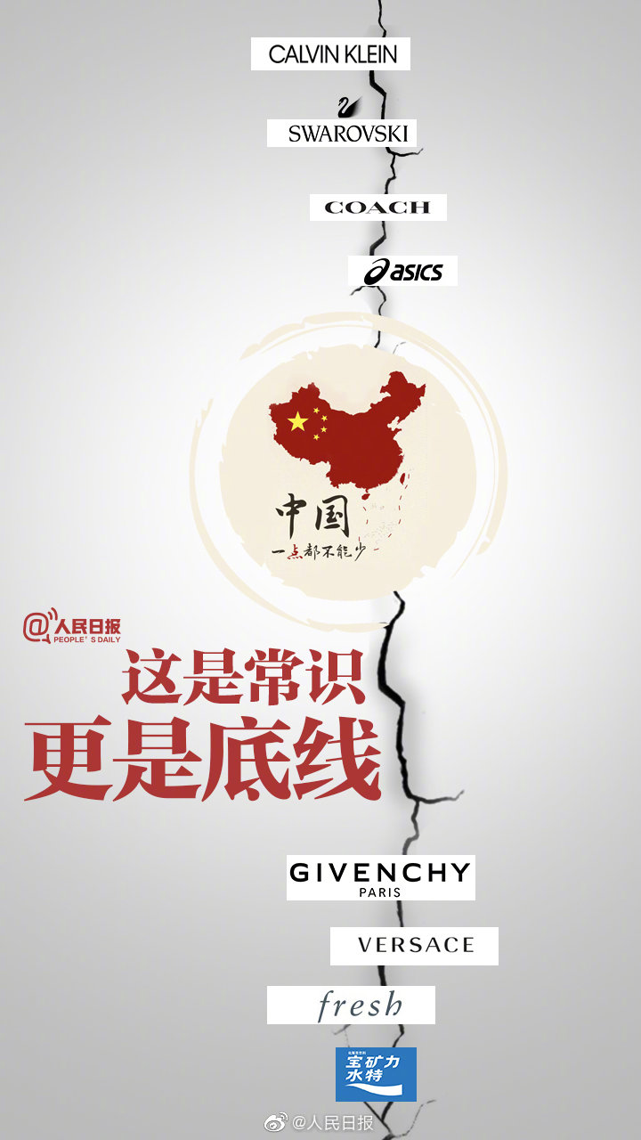 随后,蔻驰COACH、纪梵希GIVENCHY、亚瑟士ASICS、施华洛世奇SWAROVSKI、Calvin Klein等多家品牌的产品或官网上,也先后被爆出现了涉嫌侵犯中国主权与领土完整的信息。