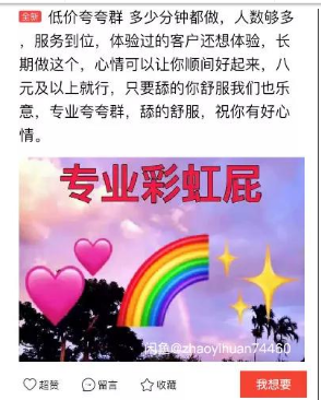 随后夸夸群向着“付费夸夸”和“免费夸夸”两个方向发展。一些电商平台商家也推出了“夸人服务”,花钱能购买到各种花式称赞;也有网友自发组织的夸夸群。
