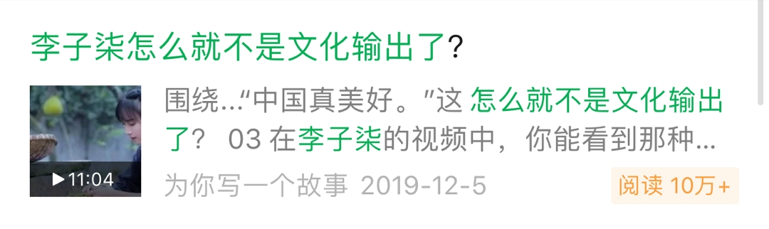 12月,李子柒是不是文化输出,成了微博上的热门话题,12月5日,雷斯林的一篇《李子柒怎么就不是文化输出了?》突然爆火,且被人民日报等多家大媒体转载。
