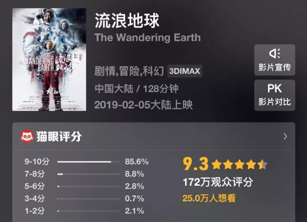 很多人感叹《流浪地球》开辟了中国的科幻元年。脑洞大开又符合逻辑的剧情、扎实特效以及“中国人碰到危难要带上家园一起离开”的价值观导向,都让国内电影观众重拾起了对于“国产大片”的信心。