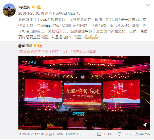 1月25日,北京新东方学校年会唱视频节目《释放自我》在网上刷屏,该节目自曝新东方内部管理中出现的诸多问题,网友纷纷评论过于真实。