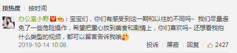 9月10日,@办公室小野在微博发表回应:将严格自查,全平台永久下架账号中一切存在安全隐患的视频。