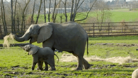 小象怒苏在象妈妈的衬托下显得格外小只。