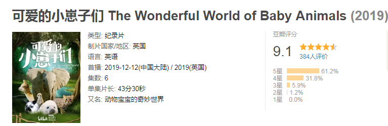 这是bilibili、BBC 、Channel5联合出品的《The wonderful world of baby animals》——可爱的小崽子们,目前六集(诞生时刻、玩耍第一课、冒险新世界、奇特新朋友、探索新技能、成长进行时)已全部上线。