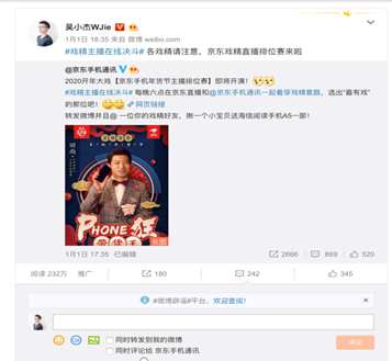 微博KOL转发京东手机官微活动预热内容
