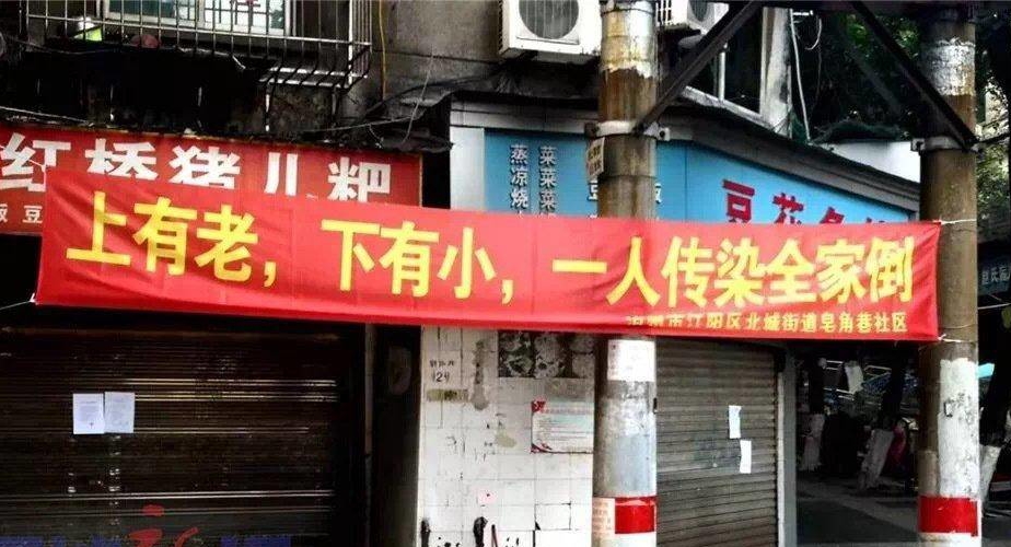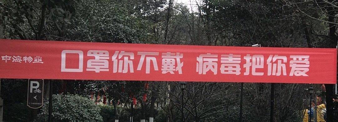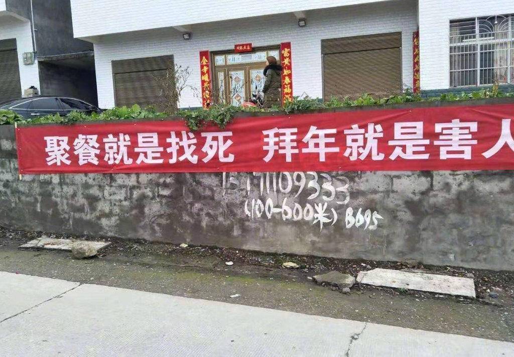 为了抗击疫情,宣传疫情预防事项,民间文案高手频出,通过言简意赅、通俗易懂的横幅标语呼吁大家"戴口罩"、"不串门"、"不聚会"、"主动隔离"、"不吃野味"等行为。