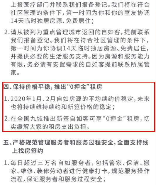2月12日,自如在其官方微博、微信发布公告,正式回应了关于房租上涨的问题。自如称,保持价格平稳,推出“0押金”租房。1、2020年1月、2月自如房源的平均续约价稳定,未来也将持续维持续约和新签价格的稳定;2、在全国九城推出新签自如客可享“0押金”租房,切实缓解大家的租房支出负担。