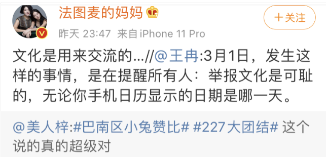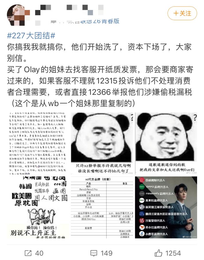 聪点赞#227大团结#成员关于肖战粉丝举报一事的发文。