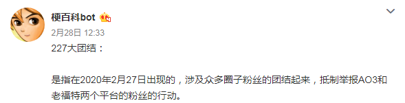用公权力举报,导致平台被封。各圈层粉丝被激怒,随后事件持续升级,纷纷加入抵制行动,史称“227大团结”。