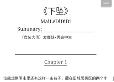 →2月24日,微博用户@迪迪出逃记发布“博君一肖”(肖战和王一博cp名)同人文《下坠》的连载链接,文中肖战的设定为发廊妹,王一博设定为男高中生,双方有感情。