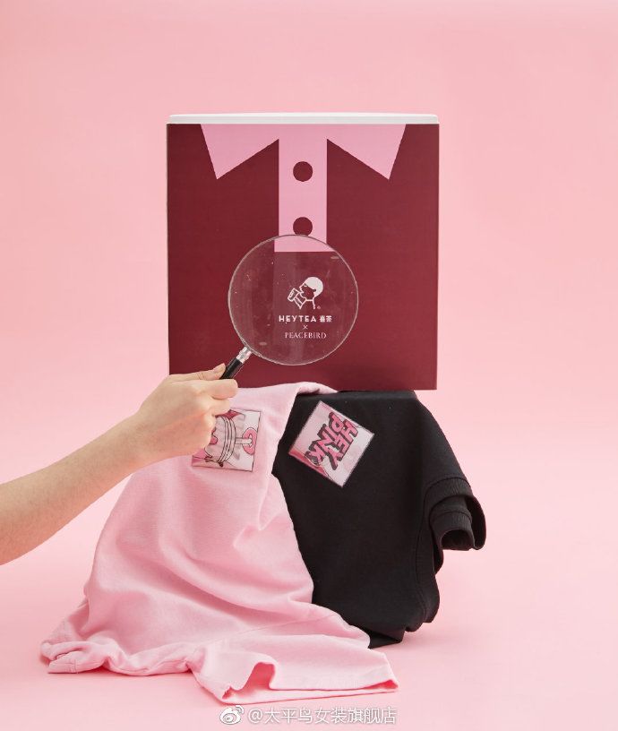 去年,PEACEBIRD X HEYTEA 共同推出“HEY PINK”女生节限定联名款TEE,粉粉嫩嫩的少女心,并且今年还在发售。