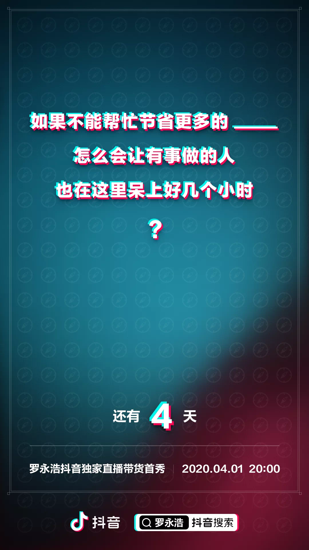 从入驻抖音后,罗永浩就每天保持一支短视频+海报的更新,足足吊足了大家的胃口。