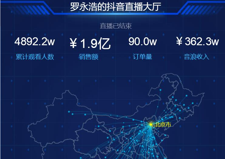 短短3个小时,支付交易总额超1.1亿元,累计观看人数超4800万人,创下了抖音平台目前已知的最高带货纪录。