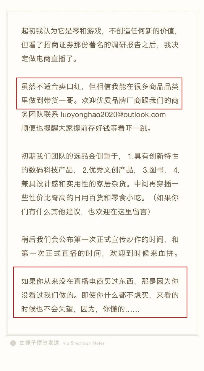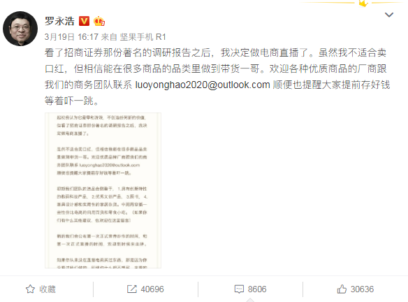 本次官宣转战直播领域中,罗永浩一上来就延续了自己的往日风格,在微博中他说道: