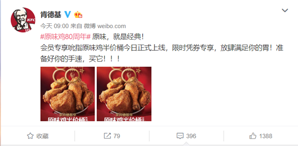 肯德基:可能是受到麦当劳半价桶的刺激。肯德基也办起了类似的活动。4月14日,肯德基推出会员专享吮指原味鸡半价桶正式上线,限时凭券专享。虽然不少用户吐槽优惠力度不大,但是依然有不少人下单购买,同样也导致多个平台服务崩溃。据悉,该半价活动主要是为了庆祝肯德基吮指原味鸡诞生80周年,肯德基WOW会员可在“我的卡包”中查看“会员专享原味鸡半价桶”优惠券,活动持续至4月19日。