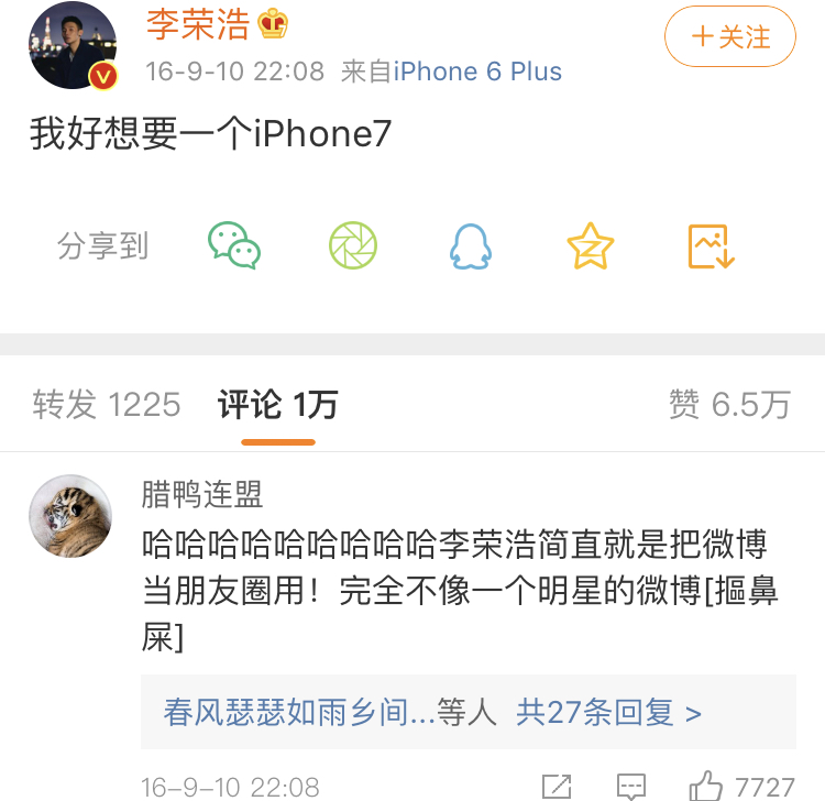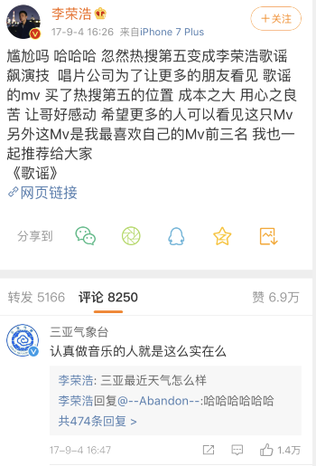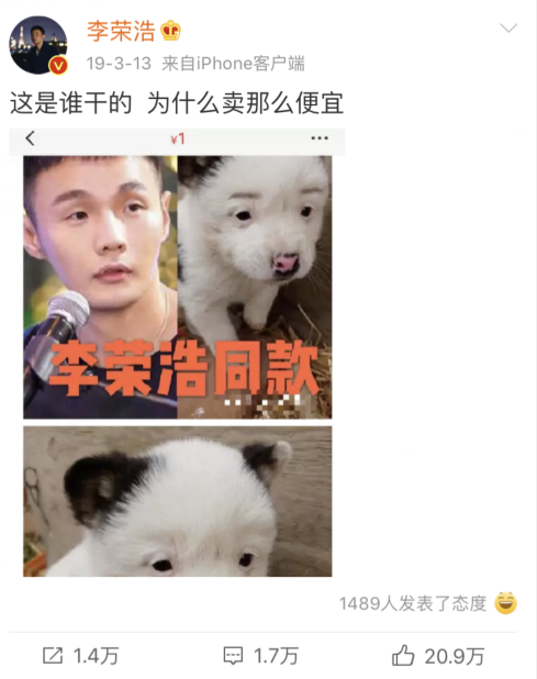一向“很有网感”的李荣浩迅速接梗,在网上迅速回应,还称自己正在专研摄影和影视后期。