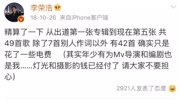 不得不说,谁也别想赚李荣浩1分钱呐~