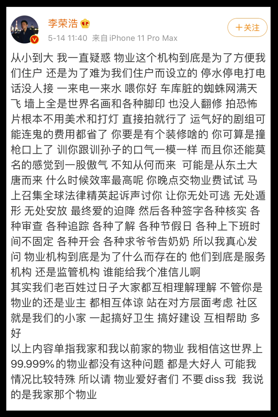 李荣浩吐槽物业上热搜,神文案笑晕网友哈哈哈