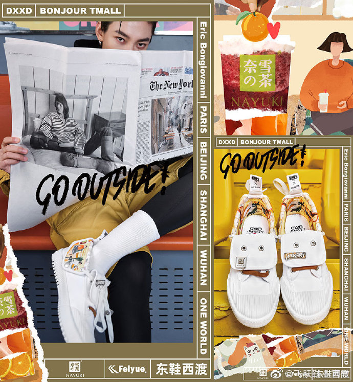 奈雪的茶和大孚飞跃联合推出“东鞋西渡DXXD2.0”帆布鞋。