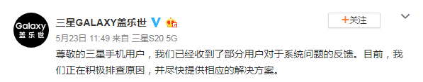 针对三星手机大面积出现黑屏、重启的问题,三星盖乐世官方回应表示,该公司已收到部分用户对于系统问题的反馈,目前正在积极排查原因,并尽快提供相应的解决方案。